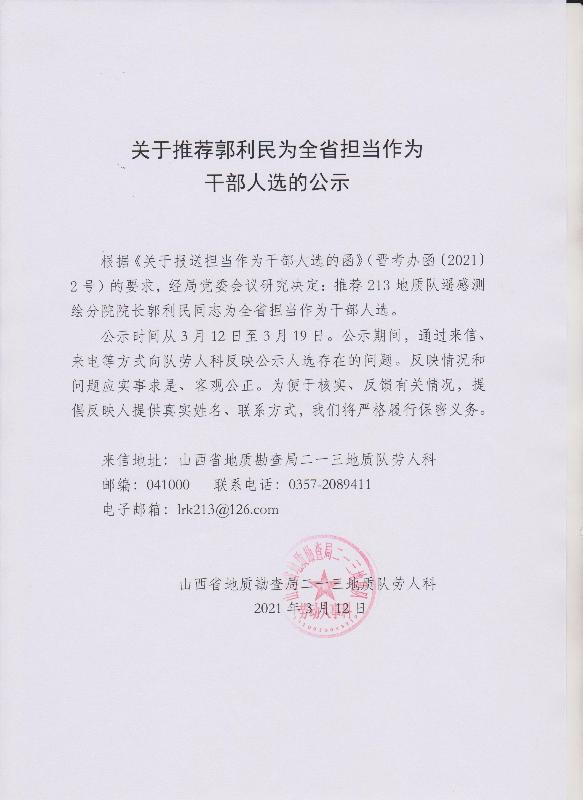 關(guān)于推薦郭利民為全省擔(dān)當(dāng)作為干部人選的公示