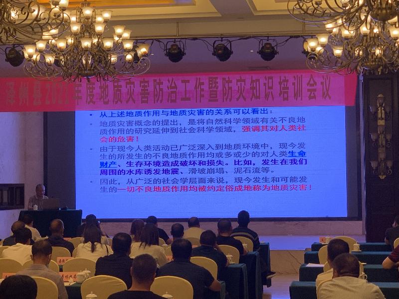 5月28日,受山西省晉城市澤州縣自然資源局委托,二一三地質(zhì)隊(duì)對(duì)澤州縣自然資源局相關(guān)負(fù)責(zé)人及各國(guó)土所、各鄉(xiāng)鎮(zhèn)主管地質(zhì)災(zāi)害防治負(fù)責(zé)人、全縣隱患點(diǎn)三級(jí)責(zé)任人和監(jiān)測(cè)人進(jìn)行了地質(zhì)災(zāi)害防治基礎(chǔ)知識(shí)培訓(xùn)。