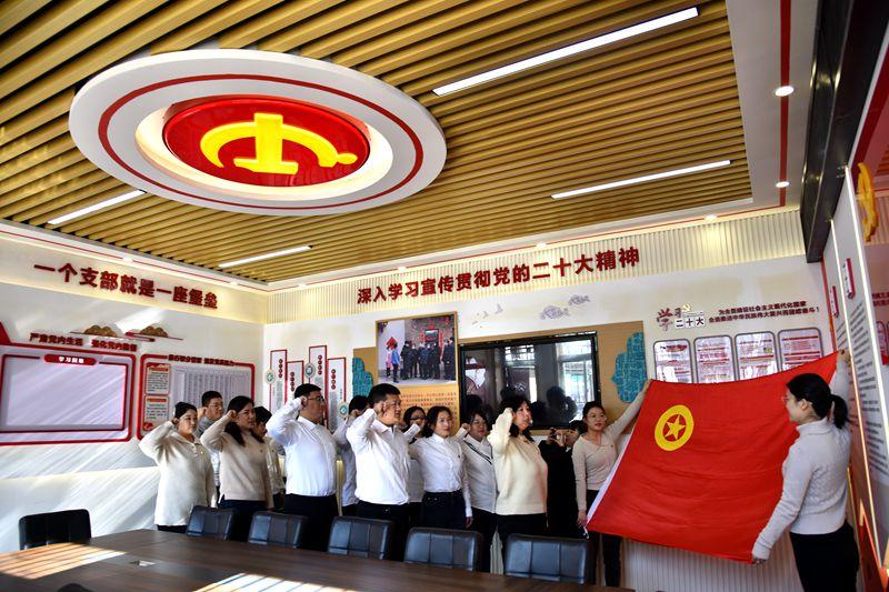 青年們面對(duì)團(tuán)旗,高舉右拳,重溫入團(tuán)誓詞,一句句誓言激蕩著青春的旋律,包含著奮斗的熱情,激勵(lì)著青年們堅(jiān)定理想信念,傳承五四薪火。