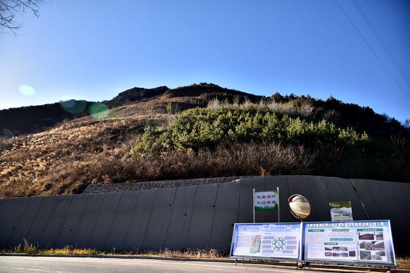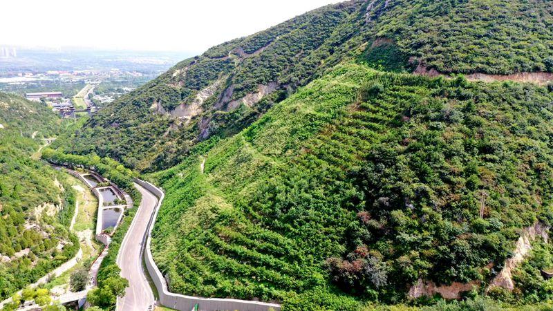 (圖片為生態(tài)修復(fù)治理五年后晉源區(qū)蒙山景區(qū)滴水崖溝不穩(wěn)定邊坡)