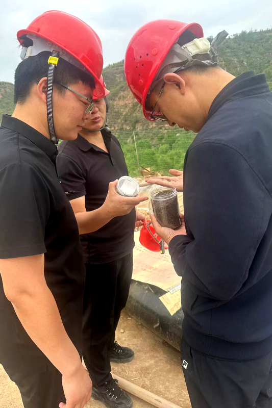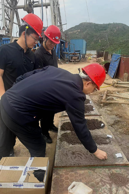 在項目工地上,任大陸詳細聽取了項目負責人工程進展情況、存在問題及下一步工作計劃的匯報,認真檢查了項目已完成工作的原始資料及巖屑編錄等內(nèi)容,并與項目組進行深入交流,對項目實施過程中存在的問題提出了整改意見。