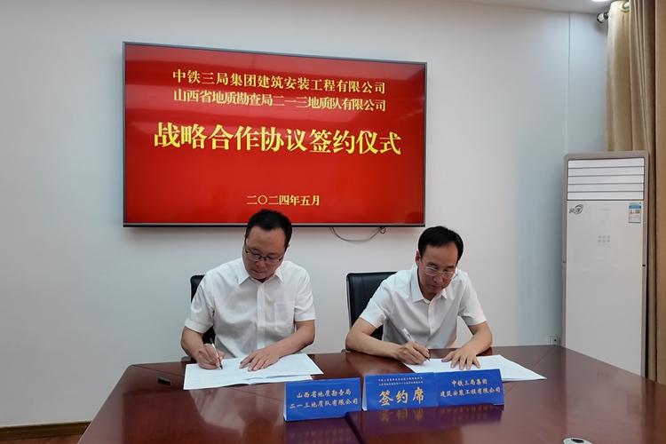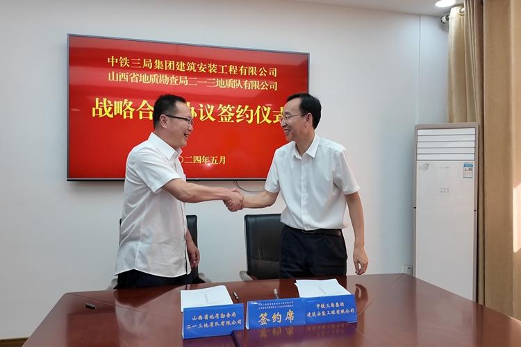 5月14日上午,中鐵三局集團建筑安裝工程有限公司和二一三地質(zhì)隊有限公司舉行戰(zhàn)略合作協(xié)議簽約儀式。