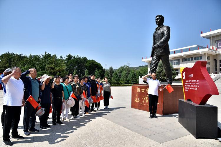 來到紀(jì)念館前,老黨員們在毛主席的銅像前脫帽肅立行注目禮,隨后高舉右拳,重溫入黨誓詞,“我志愿加入中國共產(chǎn)黨,擁護(hù)黨的綱領(lǐng),遵守黨的章程,履行黨員義務(wù)......” 一句句鏗鏘有力的入黨誓詞,銘刻在每位離退休老黨員心中。