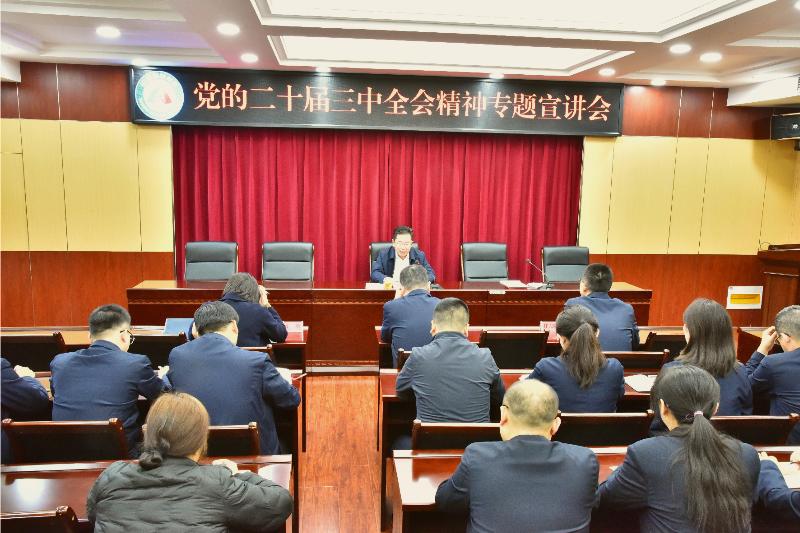 宣講會上,杜玉河從深刻理解全會的重大時代意義和深遠(yuǎn)歷史影響;深入學(xué)習(xí)領(lǐng)會習(xí)近平總書記在黨的二十屆三中全會上的重要講話精神;準(zhǔn)確理解《決定》提出的進(jìn)一步全面深化改革重大舉措;全力以赴抓好全會精神貫徹落實(shí)等四個方面,結(jié)合公司工作實(shí)際,對全會精神進(jìn)行系統(tǒng)闡釋和深入解讀。教育引領(lǐng)參會干部職工要深刻理解全會精神,用科學(xué)理論指導(dǎo)實(shí)踐、推動工作。