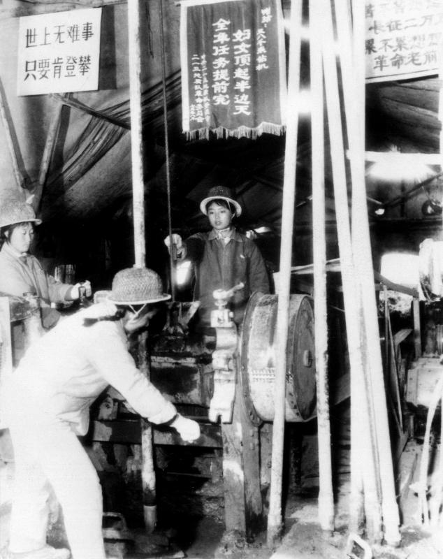 1975年4月,一群平均年齡不足19歲的姑娘們,懷揣著對地質(zhì)事業(yè)的無限熱愛,以巾幗不讓須眉的豪情,毅然投身到艱苦的地質(zhì)勘探工作中,創(chuàng)建了二一三地質(zhì)隊(duì)“三八女子鉆機(jī)”。她們用小小的身軀和青春火紅的熱情扛起保障國家能源資源的重任,以堅(jiān)韌不拔的毅力和不輸男兒的勇氣,在地質(zhì)勘探的戰(zhàn)場上揮灑汗水,戰(zhàn)勝了一個又一個困難,攻克了一道又一道難關(guān),曾創(chuàng)造了96天完成8個月的鉆探任務(wù),用千米鉆打成1160米深的超深孔、全年進(jìn)尺1313.31米的業(yè)績。1977年,原“三八”鉆機(jī)副機(jī)長杜喜梅在北京受到國家領(lǐng)導(dǎo)人的接見。她們用實(shí)際行動踐行了“以獻(xiàn)身地質(zhì)事業(yè)為榮,以艱苦奮斗為榮,以找礦立功為榮”的錚錚誓言。