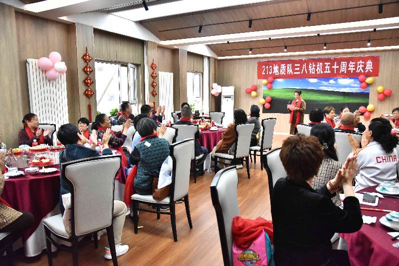 活動現(xiàn)場,趙江濤代表公司黨委及全體干部職工,向原“三八”女子鉆機(jī)的老一輩地質(zhì)工作者們致以最熱烈的祝賀和最崇高的敬意!他表示,“三八女子鉆機(jī)”已成為一個時(shí)代的符號、一代人的回憶,以及后來者的楷模,她們締造的光輝業(yè)績已成為公司發(fā)展歷程中濃墨重彩的一筆,她們留下的精神財(cái)富激勵著一代又一代地質(zhì)巾幗為地質(zhì)事業(yè)不懈奮斗,源源不斷地為推動公司發(fā)展注入了強(qiáng)大的精神動力。希望“三八女子鉆機(jī)”的老前輩們繼續(xù)發(fā)揚(yáng)優(yōu)良傳統(tǒng),一如既往關(guān)心和支持公司發(fā)展,為實(shí)現(xiàn)公司“三步走”戰(zhàn)略目標(biāo),打造“省內(nèi)一流、國內(nèi)知名”生態(tài)地質(zhì)企業(yè)貢獻(xiàn)力量!