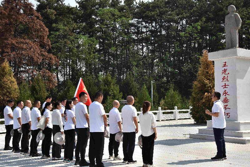 活動(dòng)在激昂的紅歌合唱中拉開(kāi)帷幕,全體黨員干部齊聲高唱《沒(méi)有共產(chǎn)黨就沒(méi)有新中國(guó)》,用鏗鏘旋律致敬百年大黨。抵達(dá)安澤革命老區(qū)后,一場(chǎng)沉浸式“踏尋先烈足跡”體驗(yàn)教學(xué)正式展開(kāi)。黨員們沿著革命先輩的足跡徒步前行,抵達(dá)王光烈士殉難處時(shí),在莊嚴(yán)肅穆的紀(jì)念碑前舉行緬懷儀式——全體人員整齊列隊(duì)行三鞠躬禮,緩步瞻仰紀(jì)念碑并集體學(xué)習(xí)《王光精神》。聆聽(tīng)著烈士投身革命、舍生取義的英雄事跡,在場(chǎng)黨員在歷史回望中筑牢信仰之基,在精神洗禮中厚植使命擔(dān)當(dāng)。