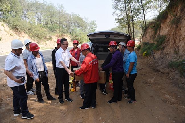 在中華人民共和國(guó)70周年來(lái)臨之際,9月30日上午,二一三隊(duì)黨委書(shū)記趙江濤、副隊(duì)長(zhǎng)刁翊及相關(guān)科室工作人員一行前往汾西縣對(duì)竹鎮(zhèn)康和村扶貧井水井工程施工現(xiàn)場(chǎng),為節(jié)日期間仍然奮戰(zhàn)在野外生產(chǎn)一線的職工送去了節(jié)日的祝福和慰問(wèn)品。