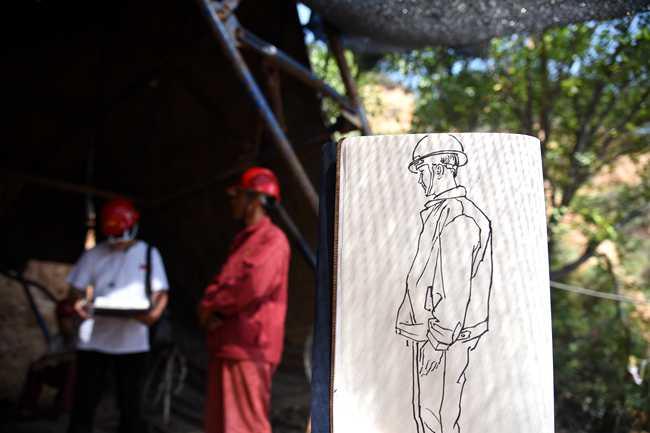 驕陽(yáng)似火,熱浪襲人。采風(fēng)第一站來(lái)到了襄汾縣李家莊金礦普查項(xiàng)目的鉆機(jī)工地,一到施工現(xiàn)場(chǎng),藝術(shù)家們就被眼前揮汗如雨的勞動(dòng)場(chǎng)面和井然有序的生產(chǎn)流程所吸引,激發(fā)了創(chuàng)作熱情,用手中的畫(huà)筆和相機(jī)記錄下鉆機(jī)工人戰(zhàn)高溫、斗酷暑,奮力拼搏、艱苦奮斗的一幕幕場(chǎng)景。