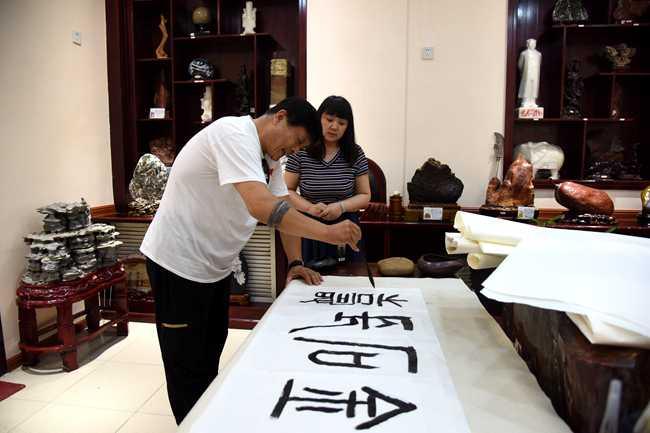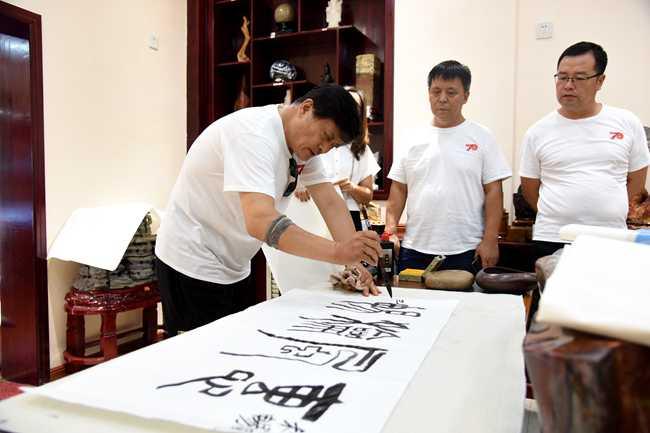 最后,藝術(shù)家們參觀了二一三奇石博物館,對(duì)館內(nèi)收藏的290余種的奇石、古生物化石、珠寶玉石等進(jìn)行鑒賞、拍攝。二一三奇石博物館作為地質(zhì)文化名片,免費(fèi)向社會(huì)公眾科普地質(zhì)科學(xué),宣揚(yáng)地質(zhì)文化、玉石文化、奇石文化,為繁榮當(dāng)?shù)匚幕聵I(yè),提高人民群眾的精神文化生活作出了積極貢獻(xiàn)。在良好的創(chuàng)作氛圍中,原山西美術(shù)家協(xié)會(huì)副主席孫海青老師為奇石博物館題字留念“金石長(zhǎng)壽”“惠風(fēng)和暢”,本次采風(fēng)活動(dòng)圓滿結(jié)束。