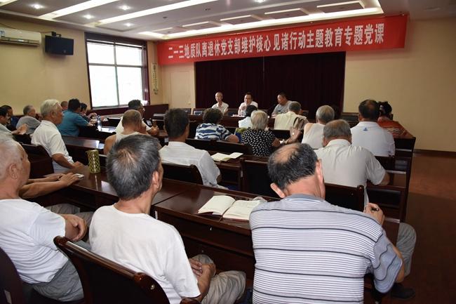 為了扎實開展“維護核心、見諸行動”主題教育活動,深入推進“兩學(xué)一做”學(xué)習(xí)教育常態(tài)化制度化,近日,二一三隊黨委副書記趙江濤以“增強核心意識、維護中央權(quán)威”為主題,在隊二樓大會議室為離退休黨支部上了一堂生動的黨課,離退休黨支部50余名黨員參加,黨課由隊離退休黨支部書記王高陽主持。