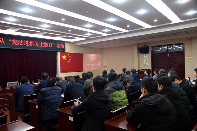 12月6日,開展了“憲法進機關(guān)主題日”活動,隊長姚文兵撫按憲法,帶領(lǐng)全體中層干部面向國旗,右手舉拳莊嚴(yán)宣誓。組織參會人員觀看《中國憲法》宣傳片,系統(tǒng)、深入、全面地了解我國憲法的核心要義和精神實質(zhì)。
