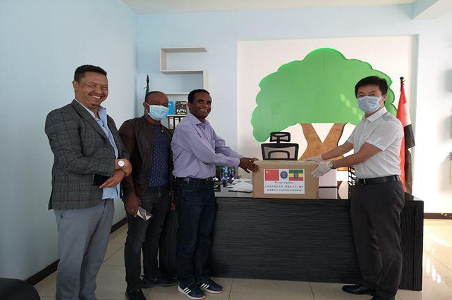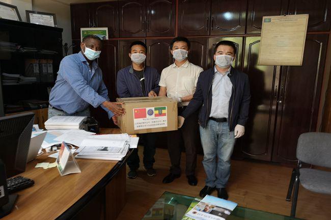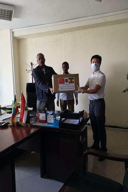 3月30日,二一三隊(duì)埃塞鉆探公司向埃塞國家水能部、首都區(qū)供水委員會、國家監(jiān)理與設(shè)計(jì)總公司、國家工業(yè)園開發(fā)總局、奧羅米亞州工業(yè)園開發(fā)總公司、奧羅米亞州監(jiān)理與設(shè)計(jì)總公司等相關(guān)單位捐贈了一批醫(yī)用口罩、防護(hù)服、消毒液等防疫物資。