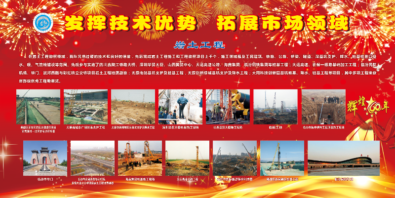 在巖土工程勘察領域,我隊憑借過硬的技術和良好的信譽,先后完成巖土工程施工和工程勘察項目數(shù)百個,參與實施了嘉陵江鐵路大橋、深圳華貿(mào)大廈、山西國貿(mào)中心、大運高速公路、海鑫基團、臨汾鋼鐵集團等樁基工程;大運高速、霍候一級路基礎加工工程;臨汾民航機場、山西中南部貨運道路、臨汾市華門巖土工程勘察;太原南站基坑支護、樁基工程,太原創(chuàng)新綠城基坑支護及降水工程;大同科技創(chuàng)新園基坑帷幕、降水、樁基工程等項目。