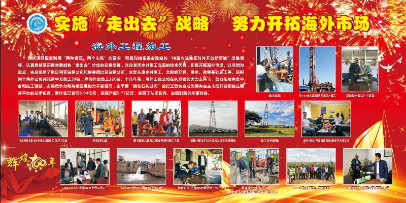 我隊(duì)遵照國(guó)家利用“兩種資源、兩個(gè)市場(chǎng)”的要求,積極對(duì)接省委省政府的“構(gòu)建內(nèi)陸地區(qū)對(duì)外開放新高地”戰(zhàn)略目標(biāo),認(rèn)真貫徹落實(shí)局黨委加快“走出去”步伐的安排部署,充分發(fā)揮水井施工方面的技術(shù)優(yōu)勢(shì),積極開拓海外市場(chǎng)。以非洲為重點(diǎn),先后組建了尼日利亞鉆探公司和埃塞俄比亞鉆探公司,主要從事水井施工、太陽(yáng)能配套、供水、勘察基礎(chǔ)施工等。目前兩個(gè)海外公司共派遣中方員工39名,雇傭外國(guó)員工320名。十幾年來,海外工程公司在隊(duì)黨委的大力支持下,努力拓展商務(wù)平臺(tái)和施工領(lǐng)域,市場(chǎng)競(jìng)爭(zhēng)力和持續(xù)發(fā)展能力不斷提高,由早期“摸著石頭過河”的打工者轉(zhuǎn)變成為擁有自主市場(chǎng)開發(fā)和獨(dú)立商務(wù)平臺(tái)的總承包商,累計(jì)簽訂合同6.94億元,實(shí)現(xiàn)產(chǎn)值5.77億元,實(shí)現(xiàn)了從無(wú)到有、由弱到強(qiáng)的華麗轉(zhuǎn)身。